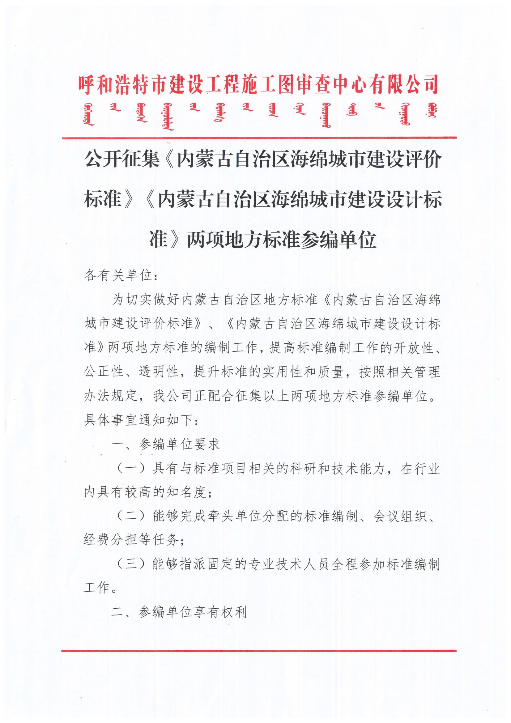 公開征集《內(nèi)蒙古自治區(qū)海綿城市建設(shè)評(píng)價(jià)標(biāo)準(zhǔn)》 《內(nèi)蒙古自治區(qū)海綿城市建設(shè)設(shè)計(jì)標(biāo)準(zhǔn)》 兩項(xiàng)地方標(biāo)準(zhǔn)參編單位