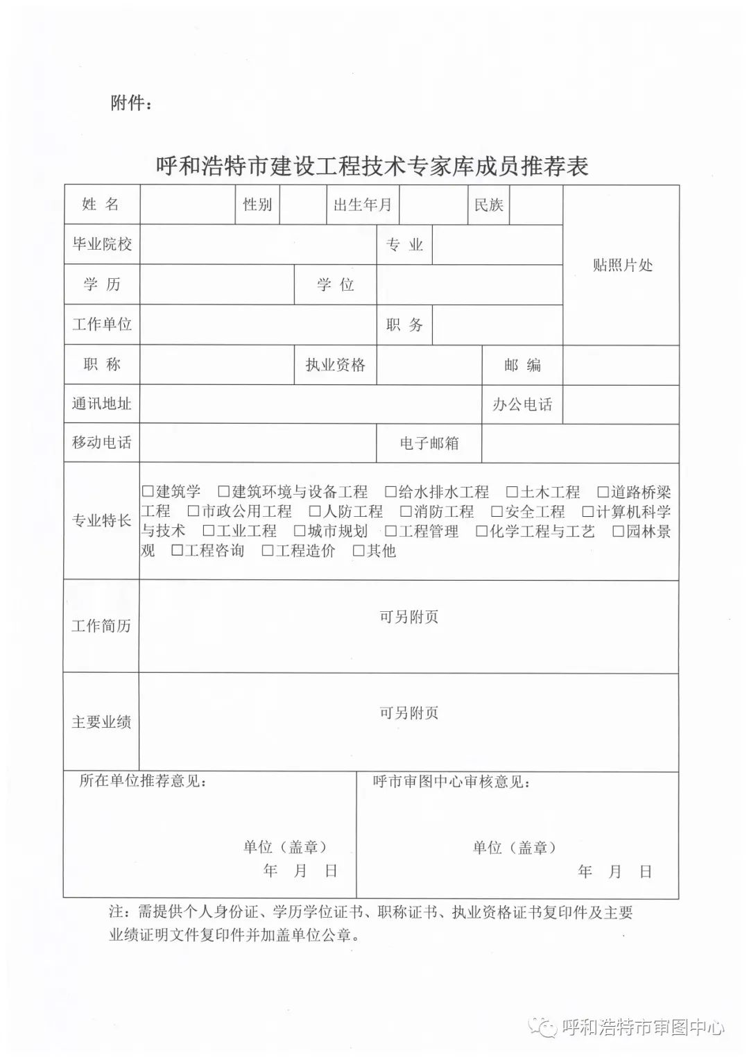 呼和浩特市建設(shè)工程技術(shù)專家庫成員推薦表